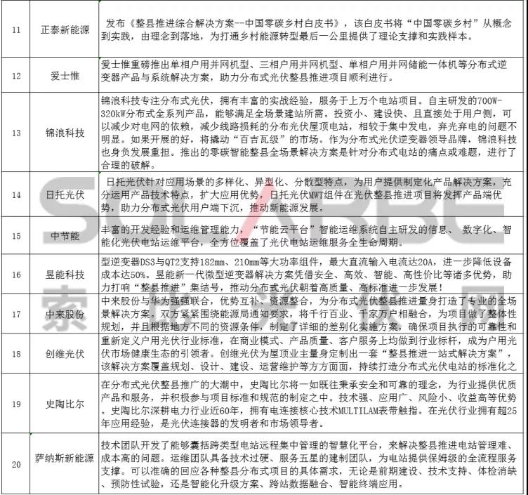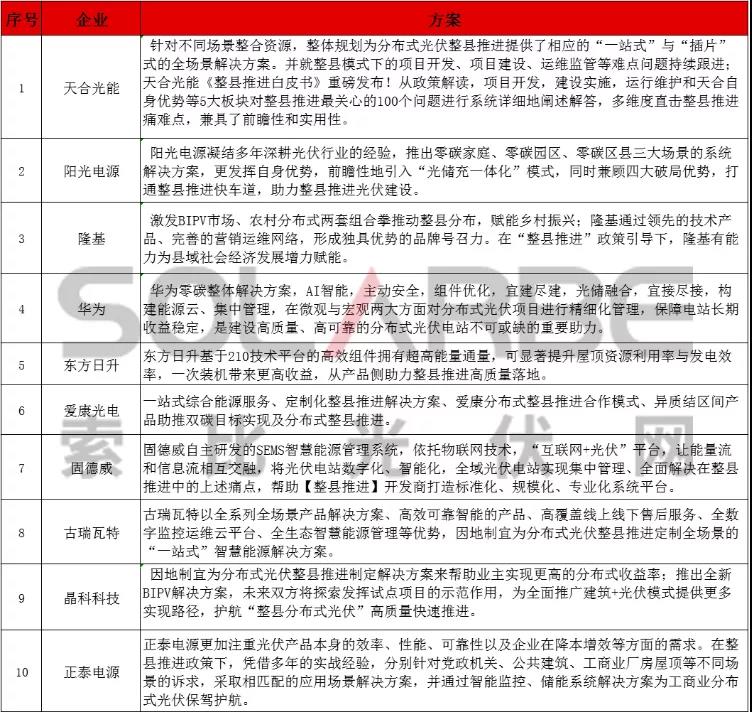 以下是由索比光伏網(wǎng)整理的25家企業(yè)就分布式光伏整縣推進提出的解決方案,一起來看看吧 。