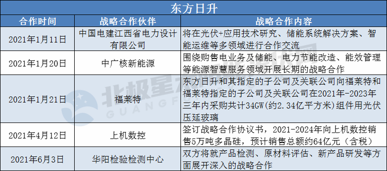 2021年1-7月部分光伏企業(yè)戰(zhàn)略合作簽約如下: