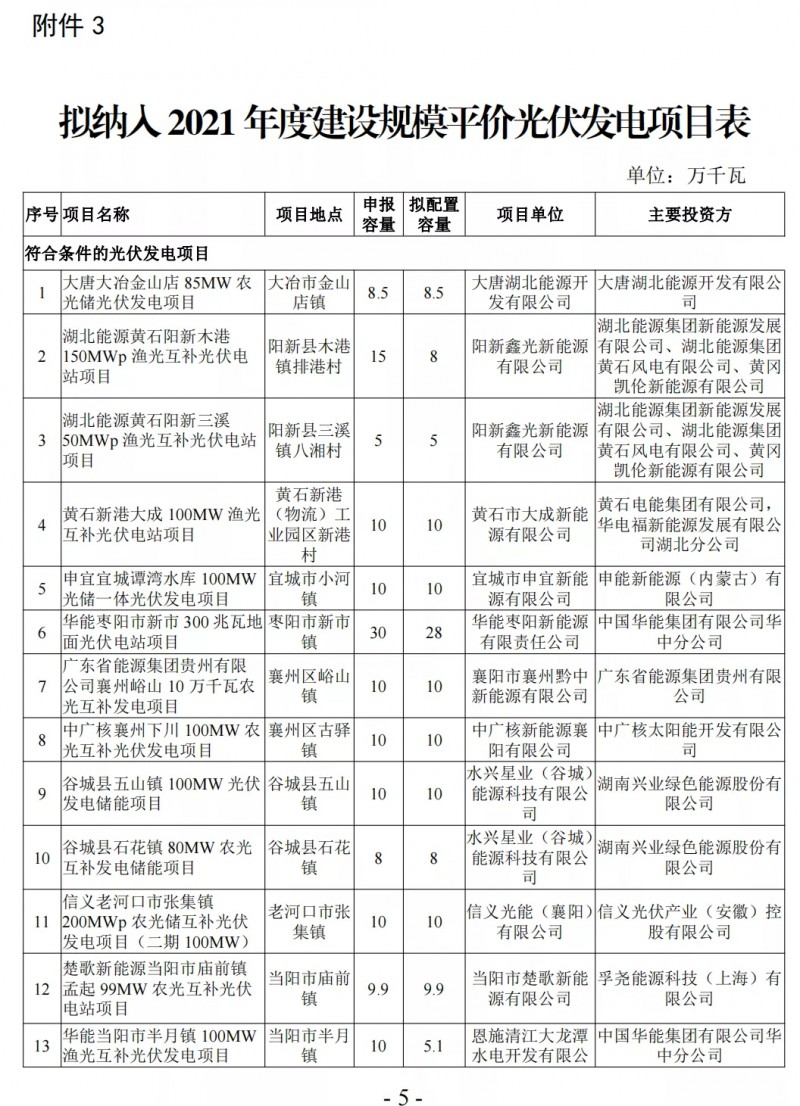 9月15日,湖北省能源局下發(fā)《關(guān)于2021年平價(jià)新能源項(xiàng)目審查結(jié)果的公示》,提出: