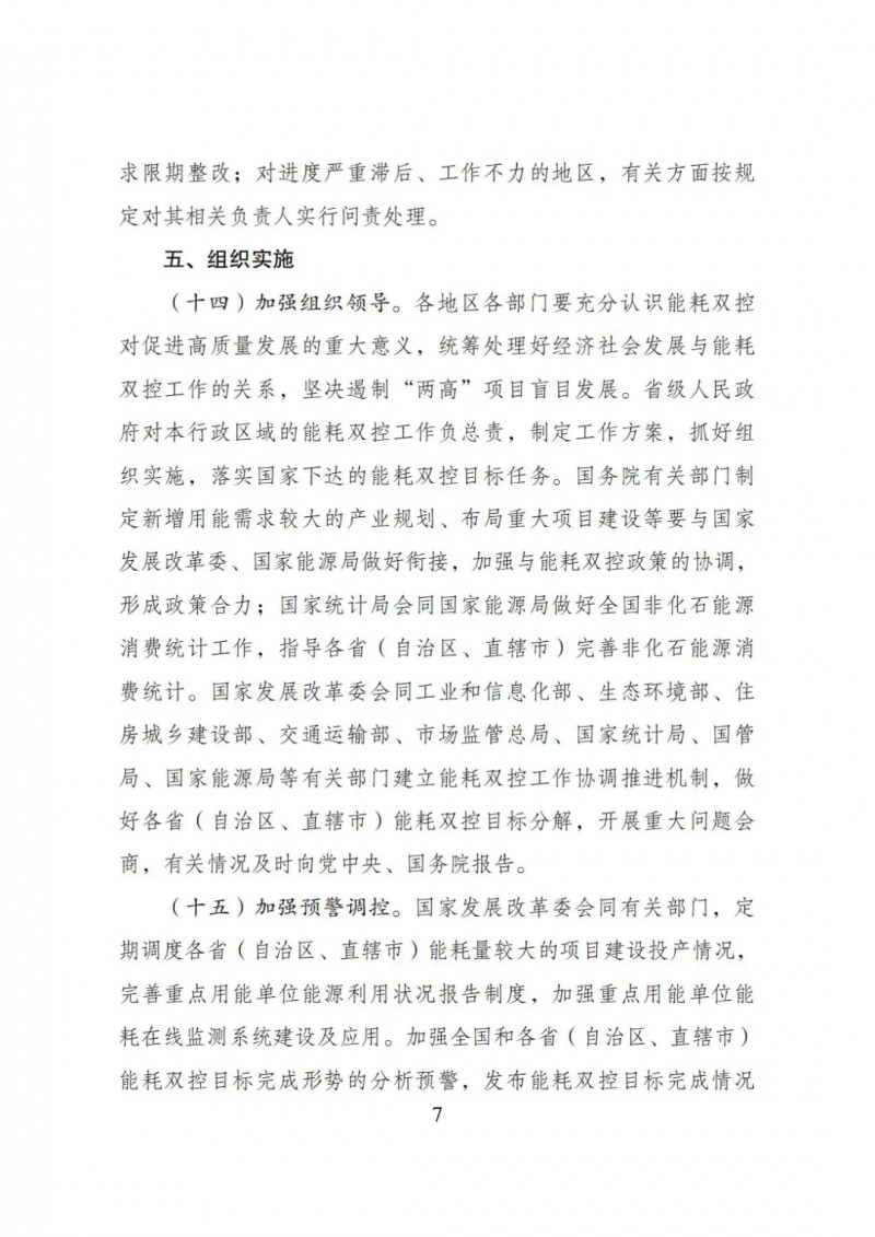 對新增能耗5萬噸標準煤及以上的“兩高”項目,國家發(fā)展改革委會同有關(guān)部門對照能效水平、環(huán)保要求、產(chǎn)業(yè)政策、相關(guān)規(guī)劃等要求加強窗口指導;對新增能耗5萬噸標準煤以下的“兩高”項目,各地區(qū)根據(jù)能耗雙控目標任務加強管理,嚴格把關(guān)。對不符合要求的“兩高”項目,各地區(qū)要嚴把節(jié)能審查、環(huán)評審批等準入關(guān),金融機構(gòu)不得提供信貸支持。