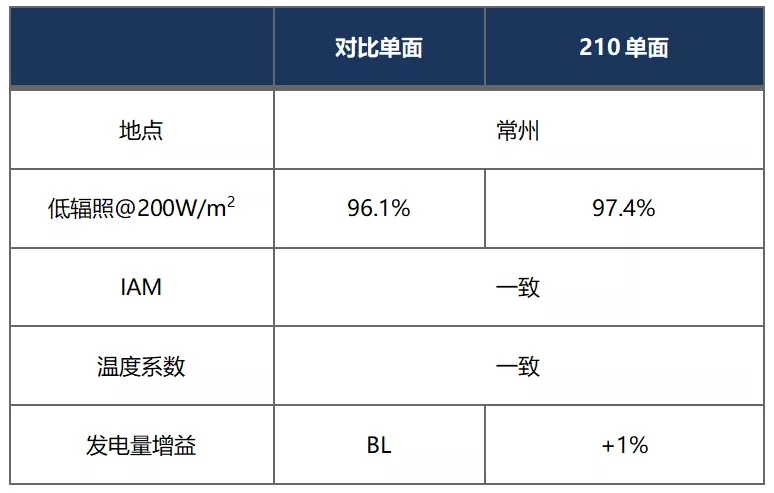 1.210組件發(fā)電量優(yōu)異主要來自于其優(yōu)異的低輻照性能。
