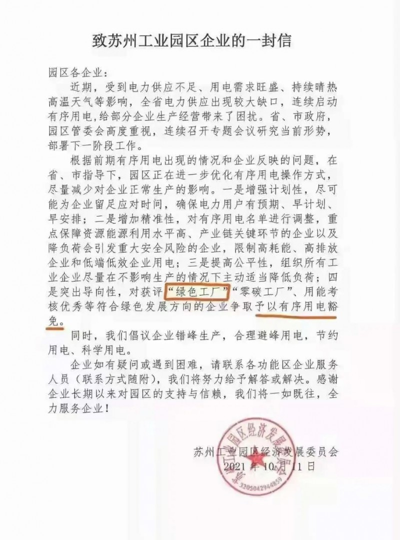 里面提到,近期受到電力供應不足、用電需求旺盛、持續(xù)晴熱高溫天氣等影響,電力供應出現(xiàn)較大缺口,連續(xù)啟動有序用電,給部分企業(yè)生產經營帶來了困擾。在突出導向性中,提出對獲評“綠色工廠”“零碳工廠”、用能考核優(yōu)秀等符合綠色發(fā)展方向的企業(yè)爭取予以有序用電豁免。