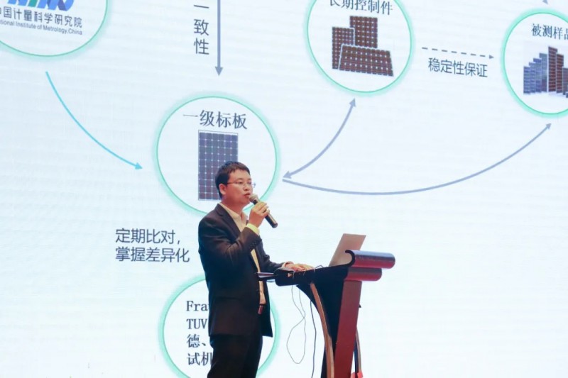 中國計量院光學(xué)所室主任助理蔡川,針對光伏行業(yè)常見的功率測試,分享了《太陽模擬器特性對光伏組件光電性能測試》的報告,提出了光伏組件光電性能測試的重要性,論述了光伏量值傳遞溯源體系,最后針對太陽模擬器特性對光伏組件光電性能測試影響的因素進(jìn)行了分析。