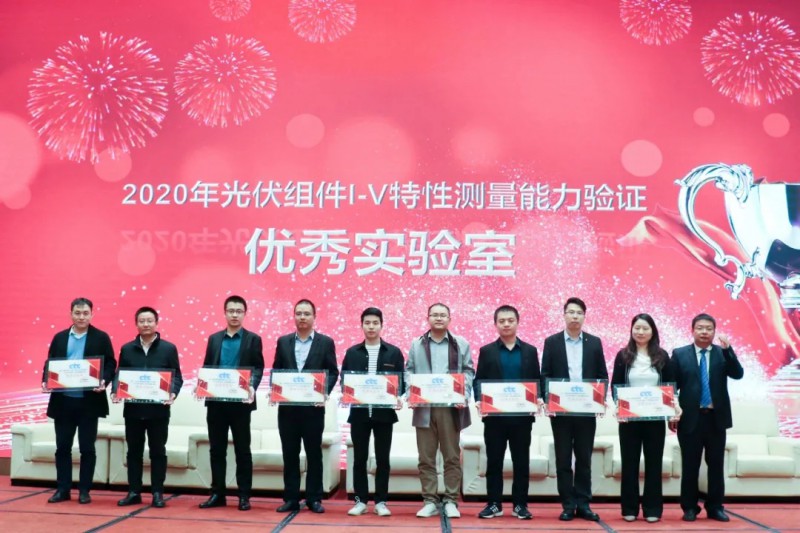 此次會議對常熟阿特斯陽光電力科技有限公司光伏測試中心、常州亞瑪頓股份有限公司中心實驗室、滁州隆基樂葉光伏科技有限公司檢測中心、東方日升新能源股份有限公司實驗室、海寧正泰新能源科技有限公司光伏檢測中心、合肥晶澳太陽能科技有限公司實驗室、環(huán)晟光伏(江蘇)有限公司檢測實驗室、江蘇隆基樂葉光伏科技有限公司檢測中心、江蘇賽拉弗光伏系統(tǒng)有限公司產(chǎn)品檢測中心、晉能清潔能源科技股份公司實驗中心、晶科能源股份有限公司檢測中心(江西上饒)、晶科能源股份有限公司檢測中心(浙江海寧)、上海晶澳太陽能科技有限公司檢測中心、泰州隆基樂葉光伏科技有限公司檢測中心、泰州中來光電科技有限公司檢測中心、通威太陽能(合肥)有限公司光伏實驗中心、無錫尚德太陽能電力有限公司光伏產(chǎn)品檢驗實驗室、張家港協(xié)鑫集成科技有限公司檢測中心、浙江隆基樂葉光伏科技有限公司檢測中心、浙江正泰新能源開發(fā)有限公司光伏檢測中心、中建材浚鑫科技有限公司光伏產(chǎn)品檢測中心、中節(jié)能太陽能科技(鎮(zhèn)江)有限公司,共計22家實驗室,頒發(fā)了“2020年光伏組件I-V特性測量能力驗證 優(yōu)秀實驗室”獎,對東方日升新能源股份有限公司實驗室、海寧正泰新能源科技有限公司光伏檢測中心、合肥晶澳太陽能科技有限公司實驗室、上海晶澳太陽能科技有限公司檢測中心,共計4家實驗室,頒發(fā)了“CTC國檢集團(tuán)優(yōu)秀合作實驗室”獎。