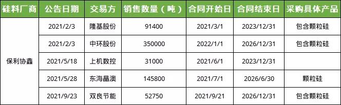 保利協(xié)鑫與晶澳簽訂顆粒硅采購長單:晶澳將于未來5年向協(xié)鑫采購總計(jì)14.58萬噸顆粒硅,顆粒硅進(jìn)一步獲得下游客戶的認(rèn)可。