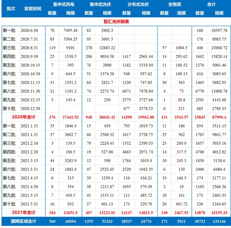 除了進(jìn)入財(cái)政部前七批的補(bǔ)貼目錄之外,2020年6月份以來,國家電網(wǎng)每半個(gè)月就會(huì)公布一批新確權(quán)的項(xiàng)目。