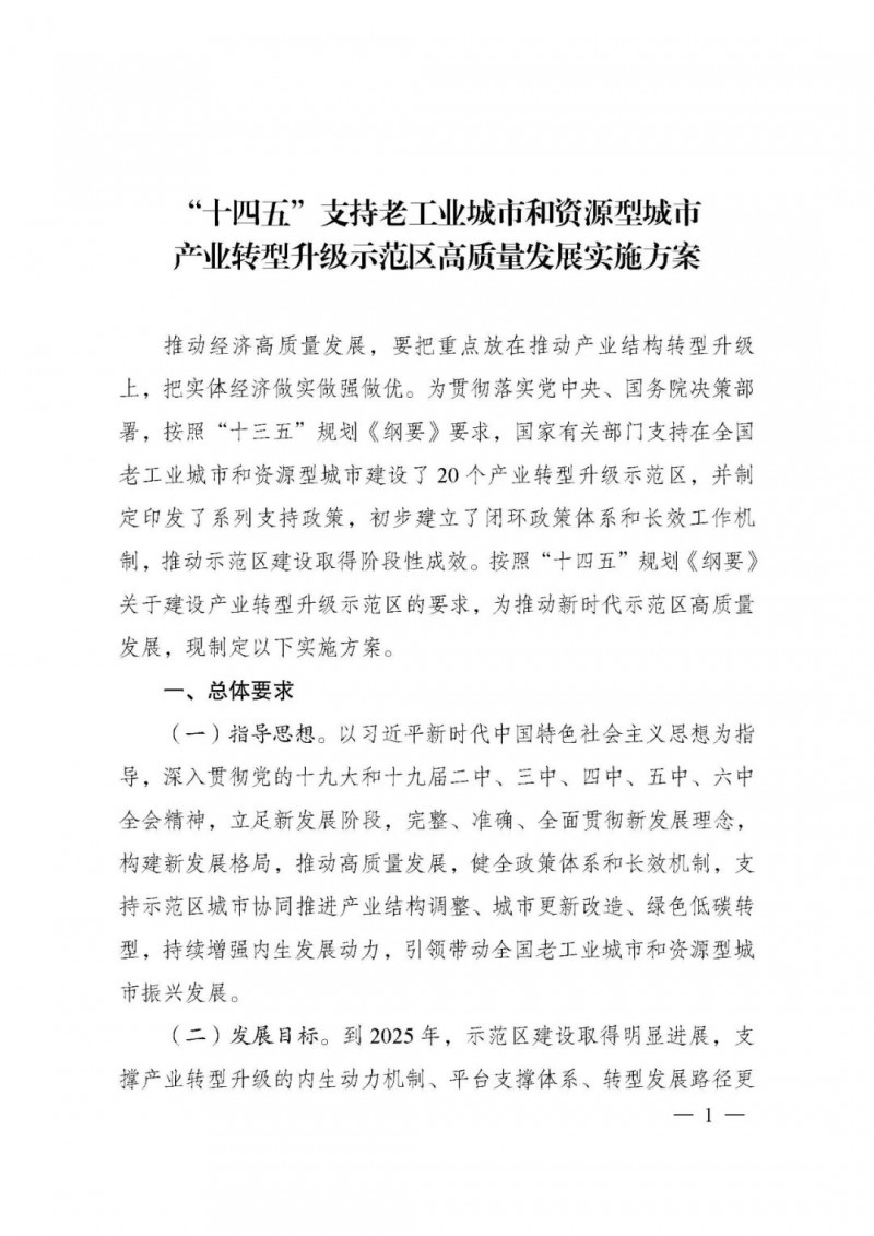 國家發(fā)展改革委等部門關(guān)于印發(fā)《“十四五”支持老工業(yè)城市和資源型城市產(chǎn)業(yè)轉(zhuǎn)型升級示范區(qū)高質(zhì)量發(fā)展實(shí)施方案》的通知