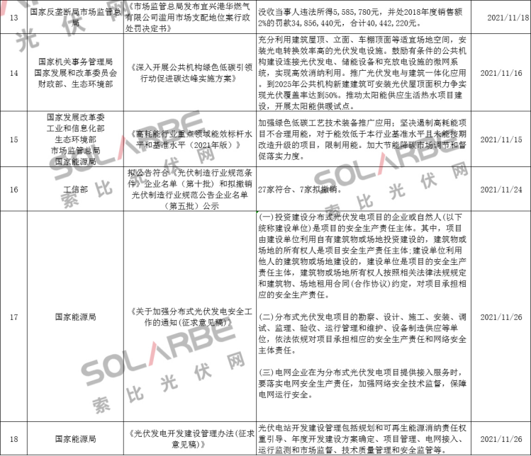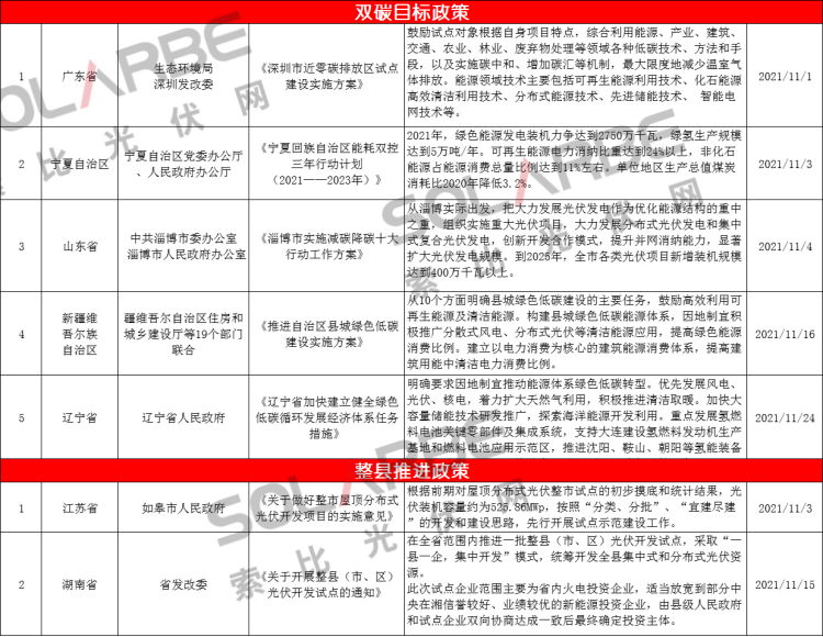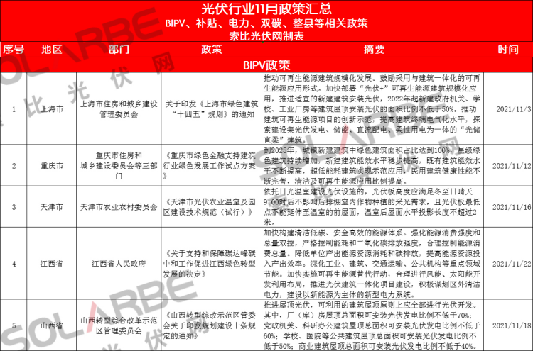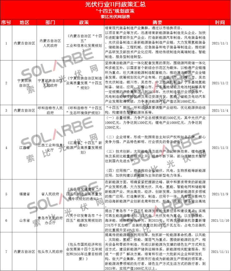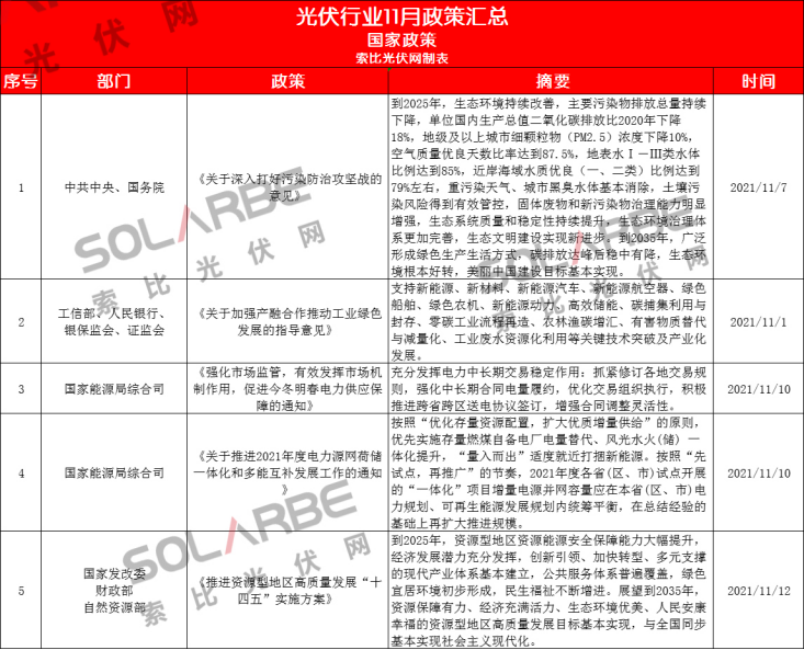 那么,11月份的光伏行業(yè)有哪些政策值得重點關(guān)注呢?下面來看索比光伏網(wǎng)的梳理。