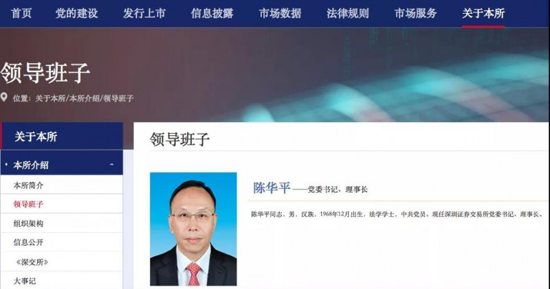 同時(shí),深交所官網(wǎng)上的領(lǐng)導(dǎo)班子介紹信息已更新。官網(wǎng)顯示,陳華平,男,漢族,1968年12月出生,法學(xué)學(xué)士,中共黨員?,F(xiàn)任深圳證券交易所黨委書記、理事長(zhǎng)。