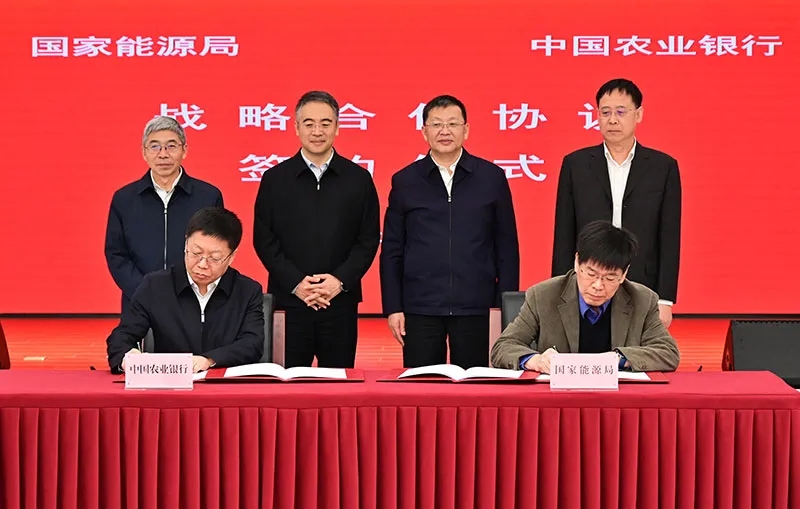 為深入貫徹習近平總書記“四個革命,一個合作”能源安全新戰(zhàn)略,落實碳達峰碳中和、鄉(xiāng)村振興重大戰(zhàn)略決策部署,2022年1月24日,國家能源局與中國農(nóng)業(yè)銀行簽署戰(zhàn)略合作協(xié)議。國家能源局局長章建華和中國農(nóng)業(yè)銀行董事長谷澍、行長張青松出席簽約儀式。國家能源局副局長林山青主持簽約儀式,國家能源局副局長任志武與中國農(nóng)業(yè)銀行副行長崔勇代表雙方簽署戰(zhàn)略合作協(xié)議。