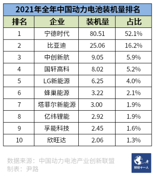 圖4: 2021年中國動(dòng)力電池裝機(jī)量排名