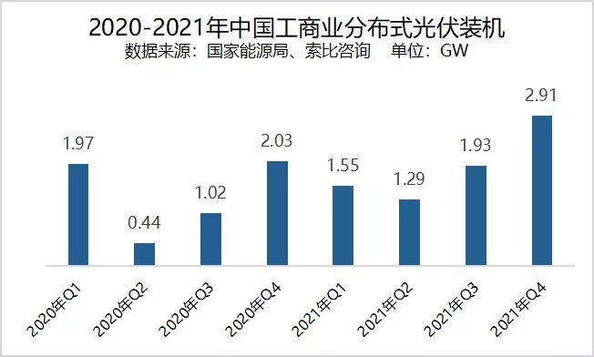 與此同時(shí),下半年以來,在中央“能耗雙控”政策、電價(jià)政策的共同推動(dòng)下,工商業(yè)分布式光伏也取得歷史最好成績(jī),全年新增裝機(jī)7.68GW,其中四季度新增裝機(jī)近3GW。