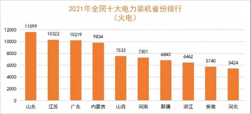 全國火電裝機(jī)容量分布圖如下所示。