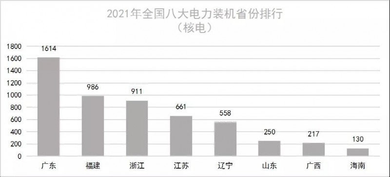 全國核電裝機(jī)容量分布圖如下所示。