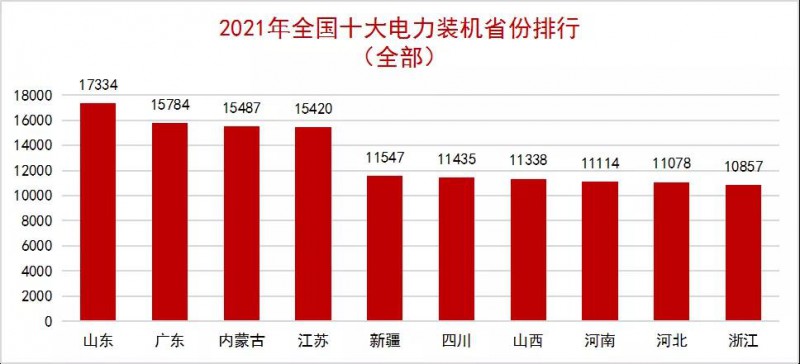 截至2021年底,全國發(fā)電裝機(jī)容量23.77億千瓦,包括:火電裝機(jī)容量13.0億千瓦,水電裝機(jī)容量3.9億千瓦,風(fēng)電3.3億千瓦,太陽能發(fā)電裝機(jī)3.1億千瓦。全口徑非化石能源發(fā)電裝機(jī)容量11.2億千瓦。