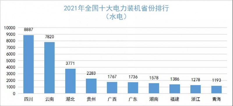 全國水電裝機(jī)容量分布圖如下所示。