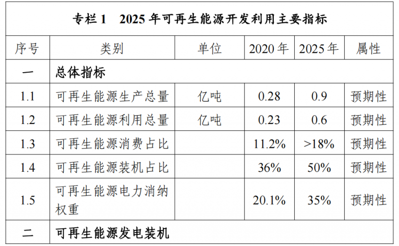 “十四五”時期主要發(fā)展目標(biāo)如下:——可再生能源總量目標(biāo)。2025 年,自治區(qū)可再生能源供給能力顯著提高,可再生能源生產(chǎn)總量超過 9000 萬噸標(biāo)準煤,可再生能源區(qū)內(nèi)利用量超過 6000 萬噸標(biāo)準煤,占當(dāng)年一次能源消費總量的 18%以上,超過全國平均水平。——可再生能源發(fā)電目標(biāo)。自治區(qū)可再生能源發(fā)電裝機達到 1.35 億千瓦以上,其中風(fēng)電 8900 萬千瓦、光伏發(fā)電 4500 萬千瓦,新能源裝機規(guī)模超過燃煤火電裝機規(guī)模,新能源發(fā)電量占自治區(qū)總發(fā)電量比重超過 35%。“十四五”期間可再生能源新增裝機 8000 萬千瓦以上,占全部新增裝機的比重超過 60%,成為新增裝機的主力。——可再生能源并網(wǎng)運行目標(biāo)。全區(qū)可再生能源在更大 規(guī)模發(fā)展的情況下實現(xiàn)合理利用,平均利用率保持在 90%以上,可再生能源發(fā)電能力持續(xù)提升并領(lǐng)先全國。