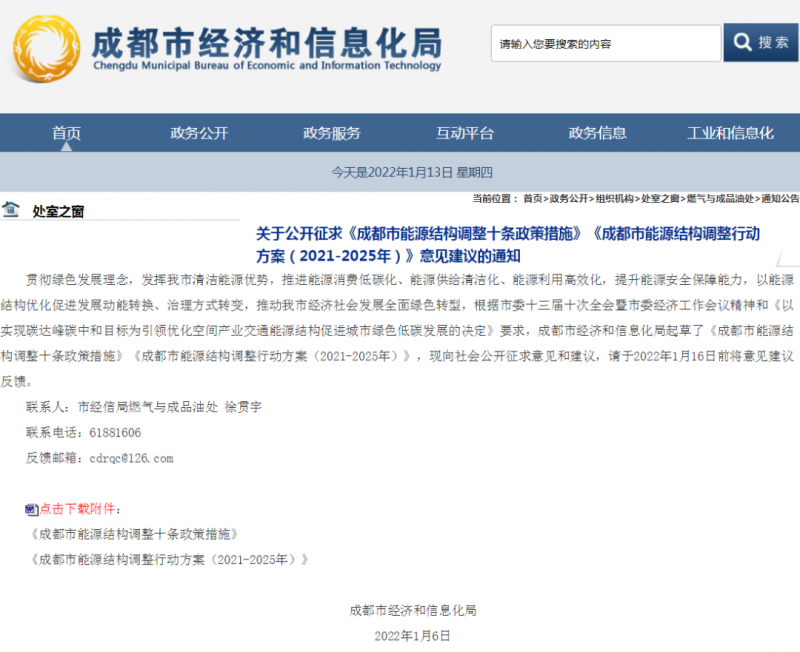 1月10日,成都市經(jīng)濟和信息化局發(fā)布關于公開征求《成都市能源結(jié)構(gòu)調(diào)整十條政策措施》《成都市能源結(jié)構(gòu)調(diào)整行動方案(2021-2025年)》意見建議的通知。支持先進儲能發(fā)展應用。積極推進電源、電網(wǎng)、用戶側(cè)配套建設儲能示范建設,按儲能設施規(guī)模200元/千瓦給予補助。