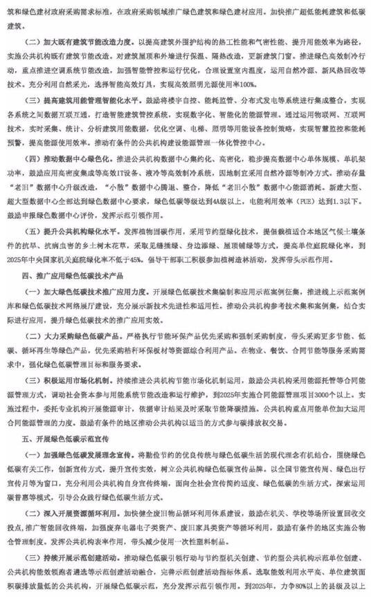 國家機關事務管理局、國家發(fā)改委、財政部、生態(tài)環(huán)境部發(fā)布關于印發(fā)深入開展公共機構(gòu)綠色低碳引領行動、促進碳達峰實施方案的通知。