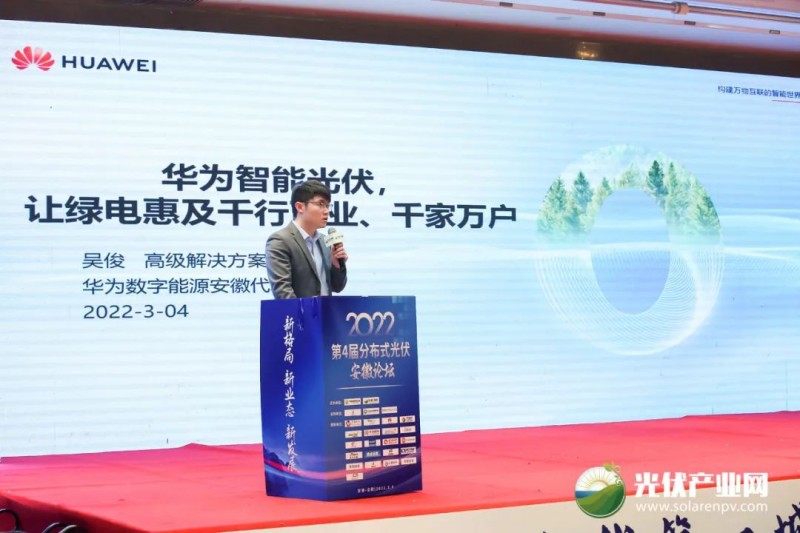 華為數(shù)字能源技術(shù)有限公司高級解決方案經(jīng)理吳俊重點(diǎn)介紹了華為數(shù)字能源產(chǎn)品線的業(yè)務(wù)概況,通過對分布式光伏應(yīng)用場景、產(chǎn)業(yè)特點(diǎn)的分析,對未來的發(fā)展趨勢進(jìn)行了預(yù)測。吳俊表示,未來的分布式光伏,將會從組串級向組件級轉(zhuǎn)變。