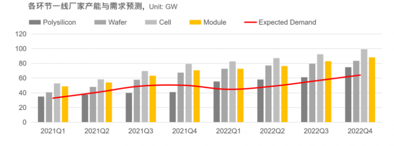 在PVInfolink的技術(shù)趨勢(shì)報(bào)告中,到2022年底,N型產(chǎn)能將突破80GW。但對(duì)于產(chǎn)業(yè)鏈來說,這80GW的數(shù)字背后,意味著從多晶硅、硅片、電池到設(shè)備等上下游環(huán)節(jié)的快速匹配,同時(shí)還需要考慮的是成本、出貨與市場(chǎng)。