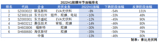 在負(fù)收益的環(huán)節(jié)中,缺少業(yè)績支撐且技術(shù)層面相對穩(wěn)定的支架、光伏玻璃、膠膜等環(huán)節(jié)整體跌幅居前,這三個(gè)環(huán)節(jié)中僅有亞瑪頓一家光伏玻璃個(gè)股實(shí)現(xiàn)正收益,其它14只標(biāo)的全部為負(fù)收益。