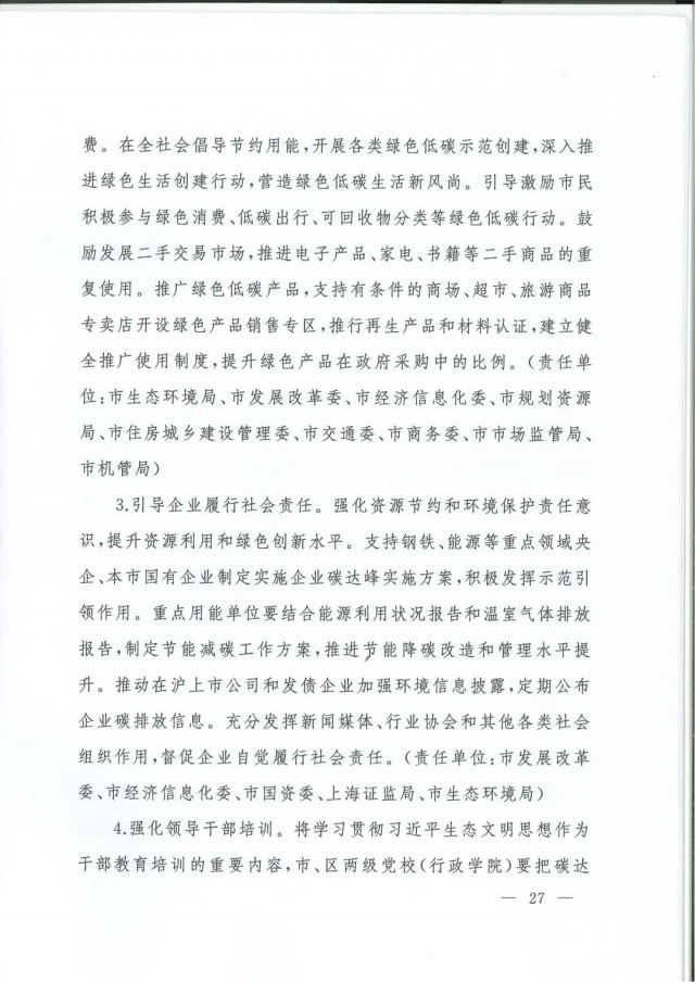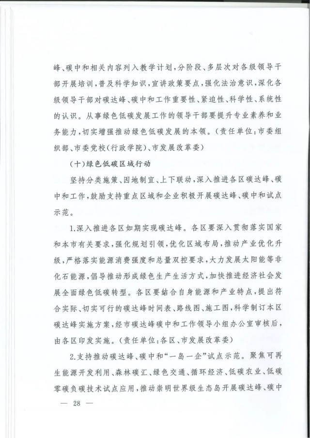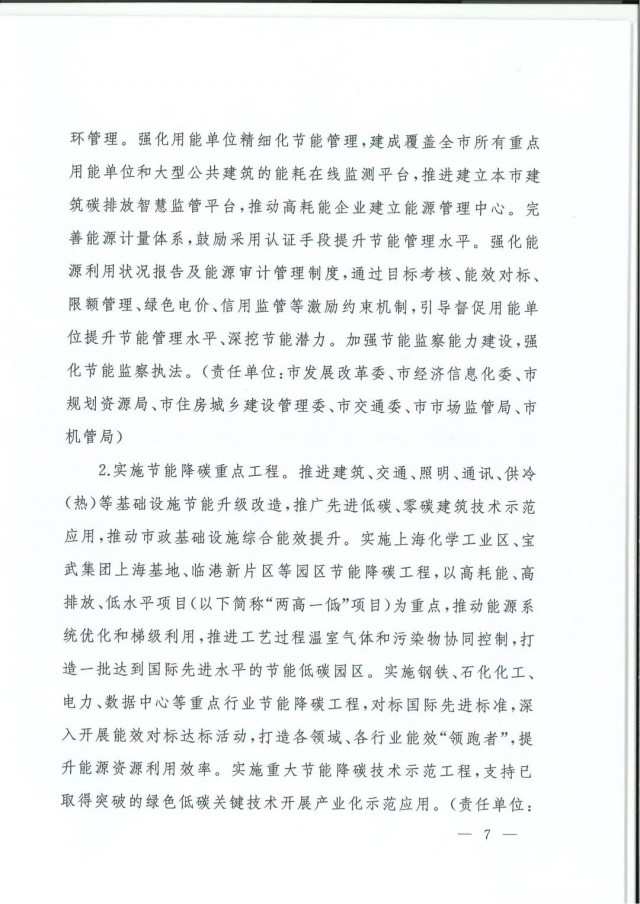 近日,上海市人民政府辦公廳印發(fā)了《上海市碳達(dá)峰實(shí)施方案》?!斗桨浮访鞔_主要目標(biāo):到2025年,單位生產(chǎn)總值二氧化碳排放確保完成國(guó)家下達(dá)指標(biāo)。到2030年單位生產(chǎn)總值二氧化碳排放比2005年下降70%,確保2030年前實(shí)現(xiàn)碳達(dá)峰。并計(jì)劃組織實(shí)施“碳達(dá)峰十大行動(dòng)”,包括能源綠色低碳轉(zhuǎn)型行動(dòng)、節(jié)能降碳增效行動(dòng)、工業(yè)/城鄉(xiāng)建設(shè)/交通領(lǐng)域綠色低碳行動(dòng)、循環(huán)經(jīng)濟(jì)助力降碳行動(dòng)、綠色低碳科技創(chuàng)新行動(dòng)、碳匯能力鞏固提升行動(dòng)、綠色低碳全民行動(dòng)、綠色低碳區(qū)域行動(dòng)。