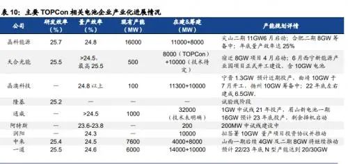 晶科能源率先扛起TOPCon規(guī)?;慨a(chǎn)大旗,天合、晶澳接踵而至;中來、一道等新興電池組件企業(yè)同樣大步邁向規(guī)?;a(chǎn)能建設(shè)。