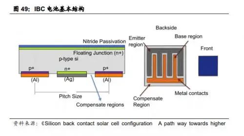 國海證券指出,IBC電池結(jié)構(gòu)特點鮮明,移除正面柵線最大化光照利用,但生產(chǎn)工藝復(fù)雜。