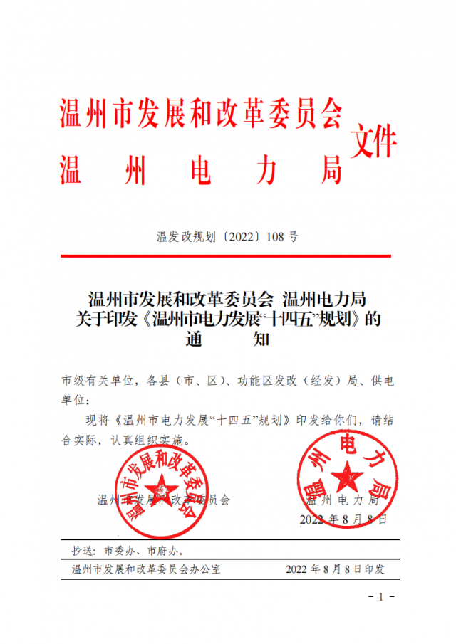 附件:溫發(fā)改規(guī)劃〔2022〕108號 溫州市發(fā)展和改革委員會 溫州電力局關于印發(fā)《溫州市電力發(fā)展“十四五”規(guī)劃》的通知.pdf