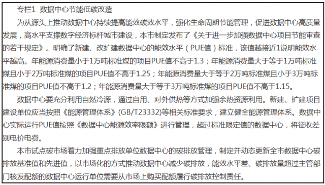 第三章 全面推進(jìn)綠色低碳循環(huán)發(fā)展將應(yīng)對氣候變化和節(jié)能作為推進(jìn)高質(zhì)量發(fā)展的重要途徑,全面落實(shí)首都城市戰(zhàn)略定位,深入貫徹減量發(fā)展、綠色發(fā)展理念,統(tǒng)籌推進(jìn)產(chǎn)業(yè)結(jié)構(gòu)、能源結(jié)構(gòu)、城市功能綠色低碳轉(zhuǎn)型,加快釋放綠色發(fā)展新動能,有力促進(jìn)京津冀區(qū)域綠色發(fā)展。一、深度推動產(chǎn)業(yè)結(jié)構(gòu)優(yōu)化調(diào)整(一)系統(tǒng)推進(jìn)產(chǎn)業(yè)結(jié)構(gòu)升級積極發(fā)展科技含量高、資源消耗低、碳排放少的高精尖產(chǎn)業(yè),加快高耗能高排放生產(chǎn)制造企業(yè)及生產(chǎn)環(huán)節(jié)的退出及高耗能設(shè)備的淘汰,有序引導(dǎo)不符合首都功能定位的一般制造業(yè)轉(zhuǎn)移退出,嚴(yán)控、壓減在京石化生產(chǎn)規(guī)模和水泥產(chǎn)能。修訂并嚴(yán)格執(zhí)行新增產(chǎn)業(yè)禁止和限制目錄,按照先進(jìn)節(jié)能低碳標(biāo)準(zhǔn)設(shè)計(jì)準(zhǔn)入條件,堅(jiān)決控制高耗能、高排放項(xiàng)目新建和改擴(kuò)建。強(qiáng)化環(huán)評、能評和碳評源頭協(xié)同控制,嚴(yán)格控制新建項(xiàng)目能耗和碳排放水平。以綠色技術(shù)創(chuàng)新引領(lǐng)高精尖產(chǎn)業(yè)發(fā)展,持續(xù)推進(jìn)綠色制造體系建設(shè),努力培育新能源、新材料、新能源汽車、燃料電池、氫能等產(chǎn)業(yè)新增長點(diǎn)。建設(shè)新能源產(chǎn)業(yè)集聚中心和產(chǎn)業(yè)化示范基地,提升產(chǎn)業(yè)鏈、供應(yīng)鏈現(xiàn)代化水平,積極創(chuàng)建國家綠色產(chǎn)業(yè)基地,打造具有國際競爭力的綠色產(chǎn)業(yè)集群。培育發(fā)展綠色智慧技術(shù)服務(wù)新業(yè)態(tài),為綠色低碳發(fā)展提供技術(shù)支持。到2025年,基本形成具有首都特點(diǎn)的現(xiàn)代化綠色經(jīng)濟(jì)體系。(三)持續(xù)推動產(chǎn)業(yè)綠色化改造對標(biāo)國際國內(nèi)先進(jìn)能效和碳排放水平,實(shí)施一批節(jié)能低碳技術(shù)改造項(xiàng)目。開展重點(diǎn)行業(yè)綠色化改造,推動燃?xì)怆姀S、燃?xì)忮仩t、工業(yè)窯爐、污水處理廠、數(shù)據(jù)中心等余熱余壓回收利用,加快實(shí)施道路照明節(jié)能改造,提升新建數(shù)據(jù)中心能效標(biāo)準(zhǔn),持續(xù)開展數(shù)據(jù)中心節(jié)能降碳改造。大力發(fā)展循環(huán)經(jīng)濟(jì),全面推行清潔生產(chǎn),推動資源綜合利用。開展市級以上園區(qū)綠色低碳循環(huán)改造,強(qiáng)化園區(qū)資源梯級利用和系統(tǒng)優(yōu)化?!笆奈濉睍r(shí)期制造業(yè)碳排放基本實(shí)現(xiàn)增減平衡,單位工業(yè)增加值能耗和二氧化碳排放分別下降12%以上和20%左右。二、深入推進(jìn)能源結(jié)構(gòu)低碳轉(zhuǎn)型大力推進(jìn)以電代煤,有序推進(jìn)以電代油、以電代氣,嚴(yán)控化石能源消費(fèi)增長,確保能源活動碳排放總量不超過“十三五”總體水平。加快削減工業(yè)用煤,現(xiàn)有燃煤機(jī)組作為應(yīng)急備用機(jī)組,有序推進(jìn)山區(qū)村莊煤改清潔能源,基本實(shí)現(xiàn)淺山區(qū)村莊“無煤化”,非應(yīng)急情況下基本不再使用煤炭,煤炭消費(fèi)總量控制在100萬噸以內(nèi)。推進(jìn)油品消費(fèi)總量穩(wěn)中有降,加快機(jī)動車電氣化替代,控制航空煤油過快增長??刂铺烊粴饫靡?guī)模,天然氣消費(fèi)總量控制在200億立方米左右。因地制宜發(fā)展本市可再生能源,大力發(fā)展光伏、地?zé)?,適度發(fā)展風(fēng)電和垃圾焚燒發(fā)電,促進(jìn)氫能示范應(yīng)用。推進(jìn)分布式發(fā)電就地并網(wǎng)使用,積極發(fā)展“新能源+儲能”“源網(wǎng)荷儲”和多能互補(bǔ)。按照“宜建盡建、應(yīng)用盡用”的原則,優(yōu)先使用可再生能源保障供給,完善可再生能源利用的基礎(chǔ)設(shè)施和產(chǎn)業(yè)配套,推動可再生能源、新技術(shù)與城市融合發(fā)展。2025年全市可再生能源比重達(dá)到14.4%以上。大力發(fā)展地?zé)峒盁岜谩⑻柲?、儲能蓄熱等清潔供熱模式?025年全市可再生能源供熱面積占比達(dá)到10%以上。(三)推動京津冀區(qū)域能源低碳轉(zhuǎn)型加強(qiáng)京津冀能源一體化發(fā)展,強(qiáng)化低碳能源開發(fā)合作。建設(shè)跨區(qū)域的電力、天然氣、油品等能源輸送通道,推進(jìn)區(qū)域內(nèi)能源基礎(chǔ)設(shè)施互聯(lián)互通。共同開發(fā)區(qū)域內(nèi)風(fēng)能和太陽能等資源,優(yōu)先安排可再生能源、清潔能源和高效電源上網(wǎng)。高標(biāo)準(zhǔn)建設(shè)張家口可再生能源示范區(qū)。促進(jìn)北京與河北新能源基地合作共建,加快西北、南部方向綠色電力輸送通道和配電調(diào)峰儲能設(shè)施建設(shè),切實(shí)提高本市綠色電力消納能力,2025年全市外調(diào)綠色電力力爭達(dá)到300億千瓦時(shí)。有序布局氫能產(chǎn)業(yè)發(fā)展,以科技創(chuàng)新為核心,強(qiáng)化政策引領(lǐng)和產(chǎn)業(yè)培育,驅(qū)動京津冀氫能產(chǎn)業(yè)協(xié)同發(fā)展,合力構(gòu)建氫能與燃料電池全產(chǎn)業(yè)鏈。三、扎實(shí)推動城市功能轉(zhuǎn)型升級(一)引領(lǐng)城市規(guī)劃建設(shè)綠色升級持續(xù)優(yōu)化城市功能布