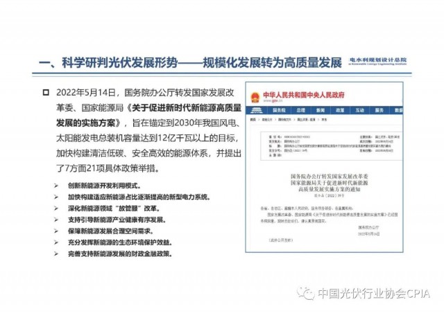 2022年7月21日,由中國光伏行業(yè)協(xié)會主辦的“光伏行業(yè)2022年上半年發(fā)展回顧與下半年形勢展望研討會”通過網(wǎng)絡(luò)直播形式順利召開。水電水利規(guī)劃設(shè)計總院新能源部副主任王躍峰作光伏發(fā)電特性和消納利用模式研究報告。王主任表示,站在當(dāng)前現(xiàn)在新能源發(fā)展的關(guān)鍵節(jié)點(diǎn),必須科學(xué)研判光伏的發(fā)展形勢,正確認(rèn)識光伏的發(fā)電特性,才能更高效提升光伏發(fā)電利用水平。