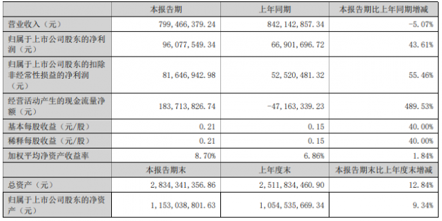 8月19日晚間,精功科技發(fā)布2022年半年度報(bào)告,報(bào)告期內(nèi),公司營業(yè)收入799,466,379.24元,同比下降5.07%,歸屬于上市公司股東的凈利潤96,077,549.34元,同比增加43.61%,詳情如下: