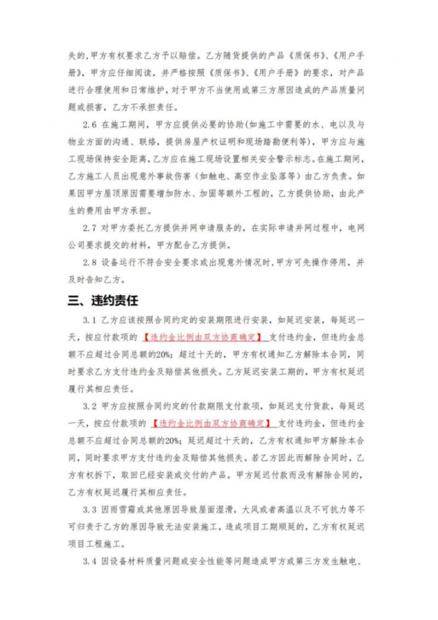 8月30日, 國家能源局轉(zhuǎn)發(fā)了此前中國光伏行業(yè)協(xié)會在充分征求各方面意見基礎(chǔ)上,編制發(fā)布的《戶用光伏產(chǎn)品銷售安裝合同(范本)》和《戶用光伏電站合作開發(fā)合同(范本)》,供居民用戶和光伏開發(fā)企業(yè)、戶用光伏經(jīng)銷商等各方參考。