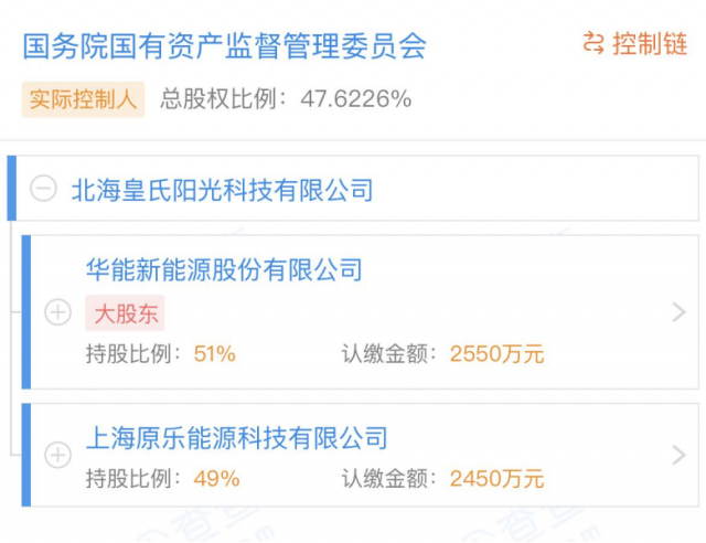 近日,另一家入股制造企業(yè)的央企也浮出水面,公開消息稱,8月28日上午,中國華能集團(tuán)有限公司廣西分公司黨委書記、執(zhí)行董事李寶山在合浦縣委副書記、縣長白銀冰以及皇氏陽光科技有限公司董事長魯嚴(yán)飛等熱情陪同下,共同參加了北?;适详柟饪萍加邢薰竞掀挚h一期3GW高效光伏組件制造項目開工儀式。企查查數(shù)據(jù)顯示,華能新能源已經(jīng)成為北?;适涎雵萍加邢薰镜目毓晒蓶|,股權(quán)占比51%。