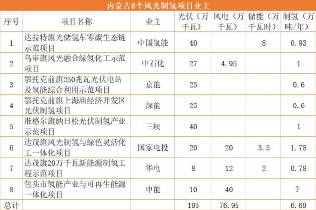 8月28日,內(nèi)蒙古自治區(qū)在鄂爾多斯市舉行風光制氫一體化示范項目集中開工儀式,其中光伏1.95GW,風電0.77GW。
