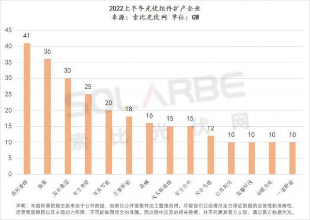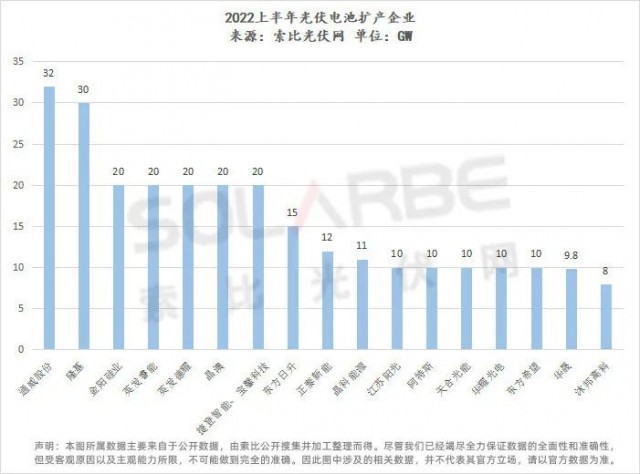 此外,還有正泰新能20GW、晶澳16GW、天大新能源15GW、東方日升15GW、天合光能12GW、江蘇陽光、寶馨科技、華耀光電 、一道新能各10GW。