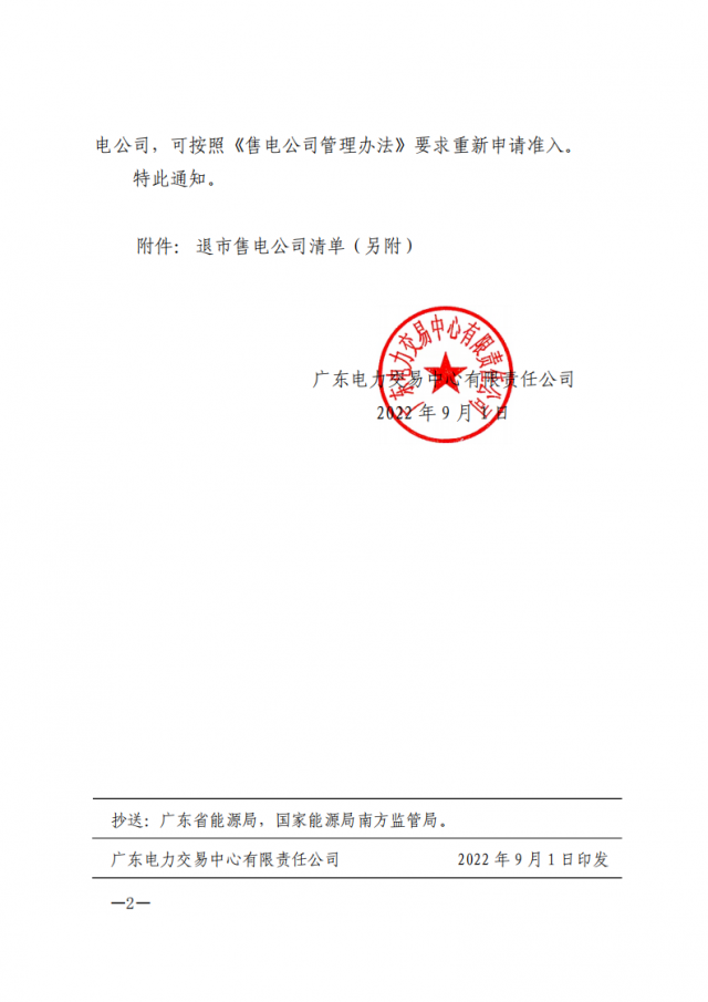 廣東電力交易中心今日發(fā)布通知,對(duì)266家售電公司實(shí)施強(qiáng)制退市,從電力市場主體目錄中刪除,并注銷其電力交易平臺(tái)賬號(hào)。