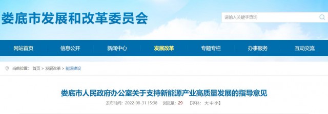 近日,湖南婁底市人民政府辦公室發(fā)布關(guān)于支持新能源產(chǎn)業(yè)高質(zhì)量發(fā)展的指導(dǎo)意見。提出全市總體目標(biāo):重點謀劃實施好風(fēng)電、光伏、化學(xué)儲能、抽水蓄能等項目,實現(xiàn)多能互補協(xié)同發(fā)展,將婁底市打造成全省重要的新能源基地。到2025年,全市新能源資源開發(fā)利用水平顯著提升,新能源發(fā)電總裝機達(dá)到240萬千瓦以上,其中光伏裝機180萬千瓦,風(fēng)電裝機60萬千瓦。