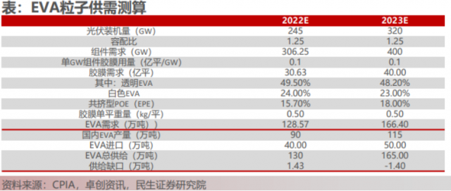 大家都在分析未來卡脖子在哪?行業(yè)分析師們經過盤算產能情況得出EVA粒子會是比較缺的環(huán)節(jié)。
