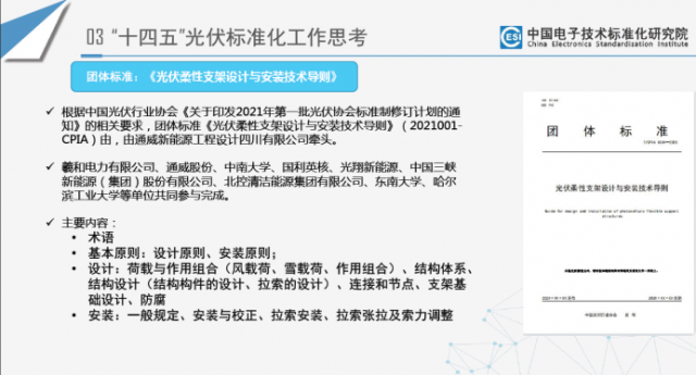 對于柔性支架相關(guān)的標(biāo)準(zhǔn)制定工作,裴會(huì)川秘書長指出,目前有團(tuán)體標(biāo)準(zhǔn)《光伏柔性支架設(shè)計(jì)與安裝技術(shù)導(dǎo)則》(2021001- CPIA)正在評審中,我們將有序推進(jìn)相關(guān)柔性支架標(biāo)準(zhǔn)制定工作,為行業(yè)技術(shù)發(fā)展把好關(guān)。