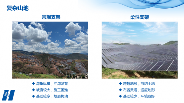 華能清能院蔣河川博士在題為《關(guān)于光伏柔性支架產(chǎn)業(yè)發(fā)展的思考》報(bào)告中介紹了光伏產(chǎn)業(yè)發(fā)展政策和趨勢、光伏柔性支架及場景需求分析、華能光伏柔性支架應(yīng)用與研究、技術(shù)分析與展望等方面內(nèi)容。他提到,柔性支架具備“大跨度、高凈空、低成本、環(huán)境友好”等特點(diǎn)。通過不同地形條件下固定支架和柔性支架的建設(shè)對比發(fā)現(xiàn):柔性支架可以跨越地形,節(jié)約土地;布置靈活,適應(yīng)地形;基礎(chǔ)較少,環(huán)境友好。蔣河川博士總結(jié)了華能集團(tuán)在貴州望謨、鎮(zhèn)寧,青海塔拉灘等項(xiàng)目上光伏柔性支架應(yīng)用情況。他指出,柔性支架的應(yīng)用提高了土地的利用率,達(dá)到了降本增效的效果,并表示柔性支架在復(fù)雜山地、農(nóng)牧光綜合項(xiàng)目、漁光綜合項(xiàng)目、茶光綜合項(xiàng)目、分布式光伏、沙戈荒大基地、近海灘涂光伏、礦區(qū)治理等領(lǐng)域應(yīng)用具備市場潛力。華能清能院作為華能的新能源技術(shù)研發(fā)中心,聚焦柔性支架的設(shè)計(jì)優(yōu)化、可靠性驗(yàn)證、運(yùn)維監(jiān)測等技術(shù)研究,并致力于技術(shù)的標(biāo)準(zhǔn)化和規(guī)范化,以推動(dòng)行業(yè)的發(fā)展。