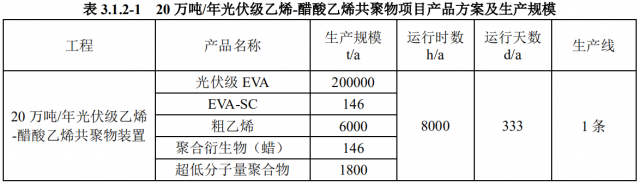 20 萬噸/年光伏級乙烯-醋酸乙烯共聚物項目具體產(chǎn)品方案及生產(chǎn)規(guī)模見下表。
