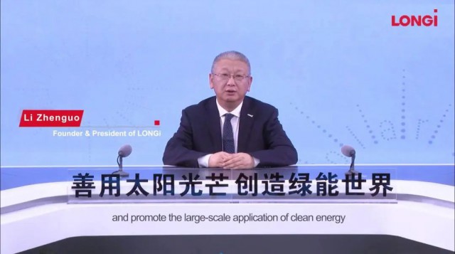 ■ 隆基綠能創(chuàng)始人、總裁李振國(guó)以視頻形式發(fā)表主題演講