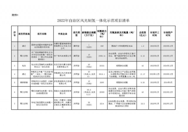 為深入貫徹習(xí)近平總書記關(guān)于內(nèi)蒙古系列重要指示精神和《內(nèi)蒙古自治區(qū)人民政府辦公廳關(guān)于促進(jìn)氫能產(chǎn)業(yè)高質(zhì)量發(fā)展的意見》(內(nèi)政辦發(fā)〔2022〕15號)精神,有序推動全區(qū)風(fēng)光制氫一體化示范項目建設(shè),按照《內(nèi)蒙古自治區(qū)風(fēng)光制氫一體化示范項目實施細(xì)則(2022年版)》有關(guān)要求,我局組織評估并優(yōu)選了7個風(fēng)光制氫一體化示范項目(以下簡稱“示范項目”),經(jīng)自治區(qū)人民政府審定同意批復(fù)實施?,F(xiàn)將有關(guān)事宜通知如下。