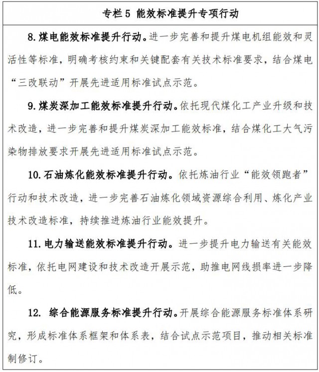 ——修訂一批常規(guī)能源生產(chǎn)轉(zhuǎn)化和輸送利用能效相關標準,提升標準要求和水平,助推和規(guī)范資源綜合利用、能效提升。
