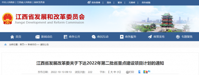 10月13日,江西省發(fā)展改革委關于下達2022年第二批省重點建設項目計劃的通知,重點項目合計115項。
