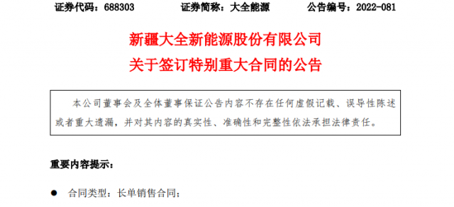10月13日,大全能源剛剛披露另一項重大訂單,客戶約定2022年至2027年采購多晶硅料共15.53萬噸,預(yù)計采購金額約為470.56億元。