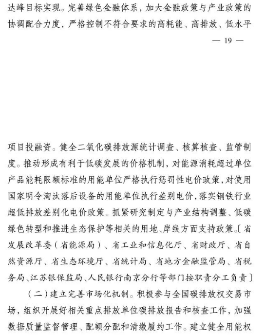 10月2日,江蘇省人民政府印發(fā)《江蘇省碳達峰實施方案》。文件提出,大力發(fā)展非化石能源。積極增加可再生能源消費,落實國家下達的可再生能源電力消納責任權重,新增跨省跨區(qū)通道可再生能源電量比例不低于50%.光伏方面,堅持集中式和分布式并重,穩(wěn)步有序開展海上光伏建設,加快推進光伏復合利用,全力發(fā)展分布式光伏系統(tǒng),開展整縣(市、區(qū))屋頂分布式光伏開發(fā)試點。到2025年,全省光伏發(fā)電裝機達到3500萬千瓦以上。風電方面,優(yōu)化風電發(fā)展結構,全力推進近海海上風電規(guī)?;l(fā)展,穩(wěn)妥開展深遠海風電示范建設。推動風電裝備制造業(yè)規(guī)?;⒓刍?、高端化發(fā)展,加強關鍵核心部件研發(fā)。到2025年,全省風電裝機達到2800萬千瓦以上。核電方面,在確保絕對安全的前提下安全有序發(fā)展核電,加快規(guī)劃建設連云港千萬千瓦級核電基地,加強核電關鍵技術、核電裝備研發(fā)和核能多元化綜合利用,積極穩(wěn)妥推進綠色核能供熱示范項目,研究制訂核能利用支持政策。其他方面,因地制宜規(guī)劃發(fā)展生物質(zhì)能,積極推進沼氣發(fā)電項目建設,統(tǒng)籌布局垃圾焚燒電站項目。因地制宜加強水能利用,科學推進抽水蓄能開發(fā)。大力推進光熱能、地熱能、空氣熱能等可再生能源的非電化利用,加快推動氫能研究與推廣應用。力爭到2025年底全省生物質(zhì)發(fā)電裝機規(guī)模達到300萬千瓦。