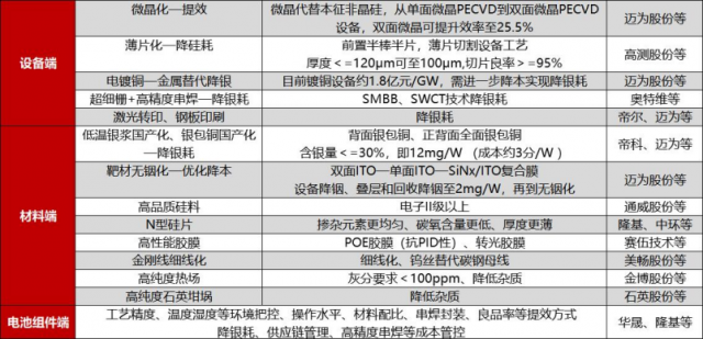 ●硅片、輔材、設(shè)備需要針對性開發(fā)以及提效降本。